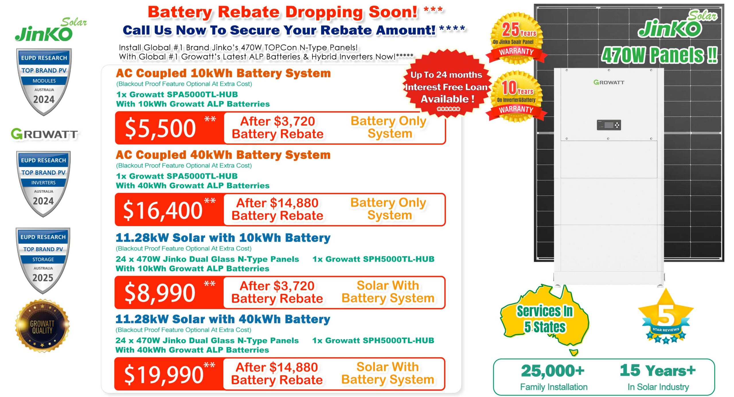 ****This promotion only applies to Battery Only Systems with Growatt ALP battery.