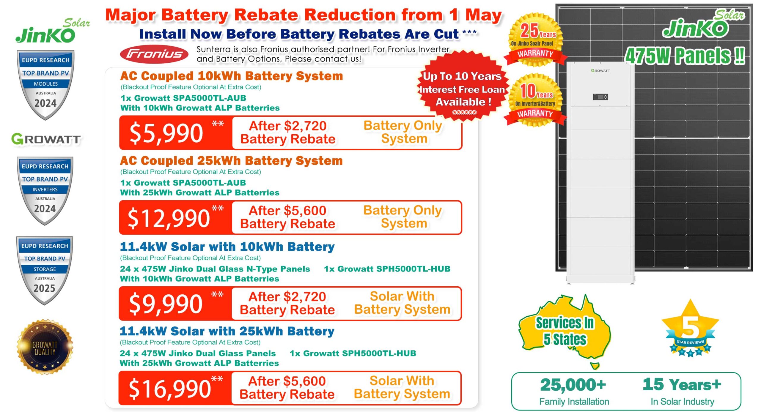 ** $14,900 is estimated battery rebate based on 8 units of Growatt ALP battery installation.